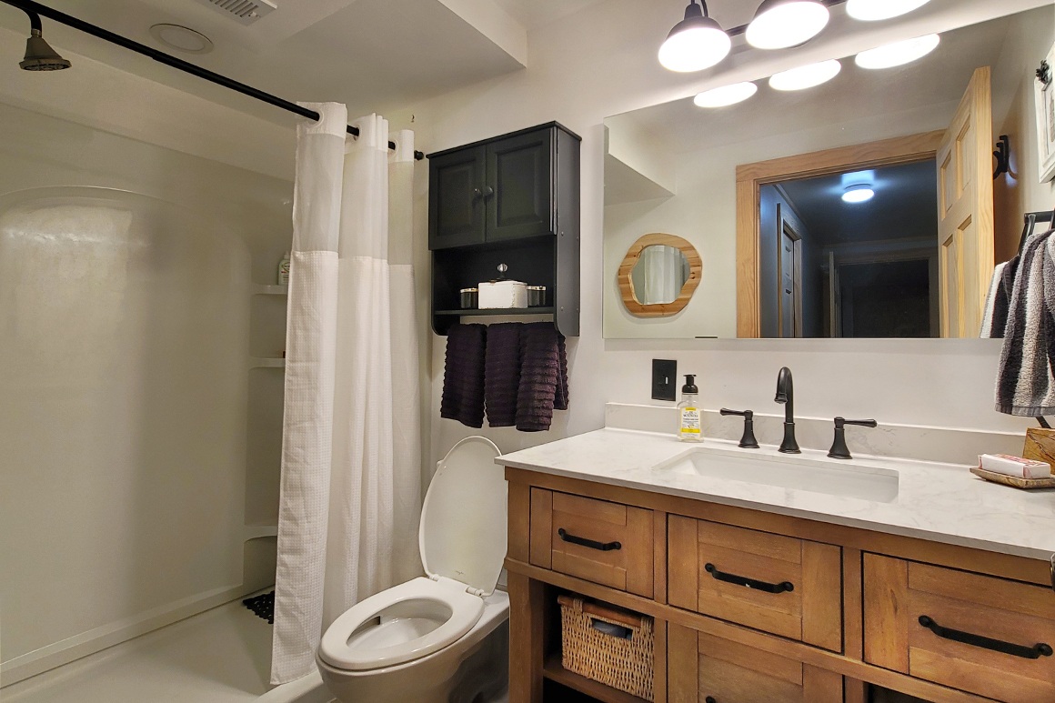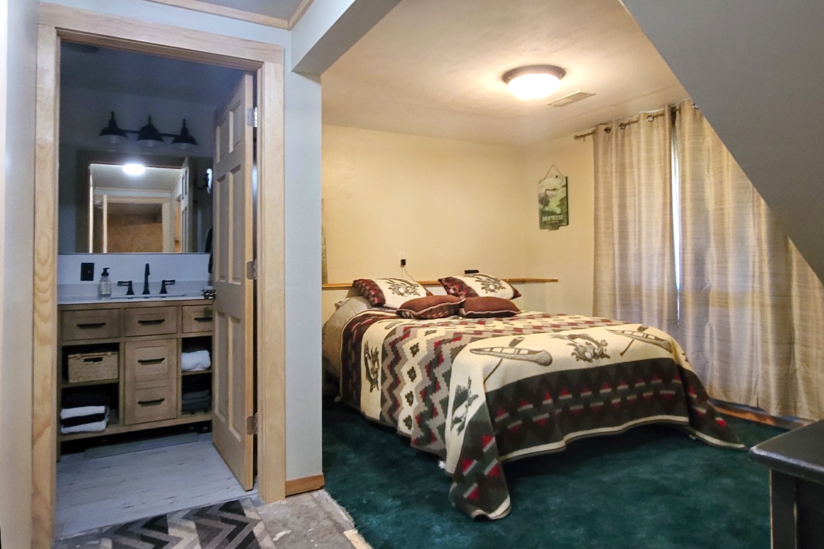 Whether you’re looking for a full-time residence, a weekend retreat, or a vacation rental property, this beautiful 1500 sq ft log home, on 5.65 acres, has it all. The 3-BR, 2-Bath home has an open concept layout with a kitchen, living room and bathroom on the main level, and a loft that is used as a bedroom with room for additional beds for your guests. The walkout basement has a laundry room and an additional bedroom downstairs. A spacious 30×40 garage with concrete floor provides plenty of storage and space for a workshop. The property is surveyed and consists of two properties that could be subdivided if you wish, or you could build an additional home. All furniture and appliances are included such as stove, refrigerator, washer, and dryer (LP tank is rented).